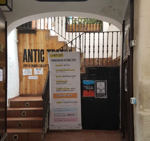 Este espacio multifacético funciona como bar con terraza y, a su vez, como un centro de creación artística. El bar financia el espacio de teatro y danza, apoyando así a artistas locales e internacionales. El Antic Teatre apuesta por la experimentación en las artes escénicas contemporáneas, la interdisciplinariedad y la atención a la diversidad, ofreciendo una mirada artística de alcance internacional con acción local.
